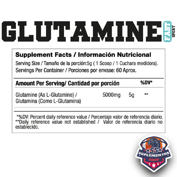Se recomienda que adultos tomen 1 servicio (5 g) de Glutamine Fast Sport disuelta en aproximadamente 6-8 oz (180-240 ml) de agua o bebida de su preferencia, una vez al día, preferiblemente después de una comida o al finalizar el entrenamiento. Almacenar en su envase original, en lugar seco, temperatura inferior a 30 °C y humedad relativa menor al 75 %.