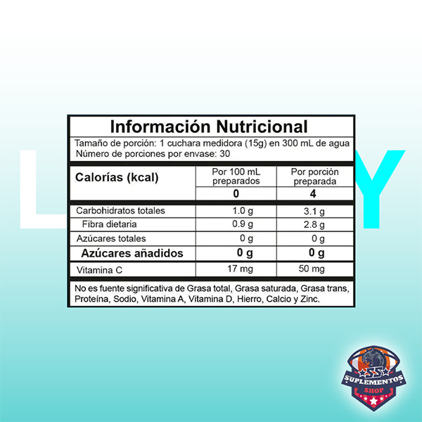 Modo de uso: Mezclar con 200–250 ml de agua, jugo o batido proteico.